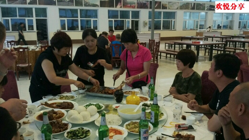 峡谷中的夜来的更快点,下山之时,天已经黑。回旅店收拾妥当稍作休息,6点半左右,进行了我们聚餐欢唱。在公司领导的厚爱之关心之下,我们把酒言欢、对酒当歌、载歌载舞,放松心情,伴随卡拉OK的响起,公司领导为我们献上了红歌《红梅赞》以感谢大家对本次红色旅游的支持和响应。在歌声中我们缅怀老一辈革命家的峥嵘岁月,更激励我们汲取力量在和平年代开拓更美好的明天。年轻有为的员工更用《故乡》类的歌曲表达了对亲情、友情的情感寄托。声声歌声唱出了我们对美好生活的向往,对北粉大家庭的美好祝愿和珍视。