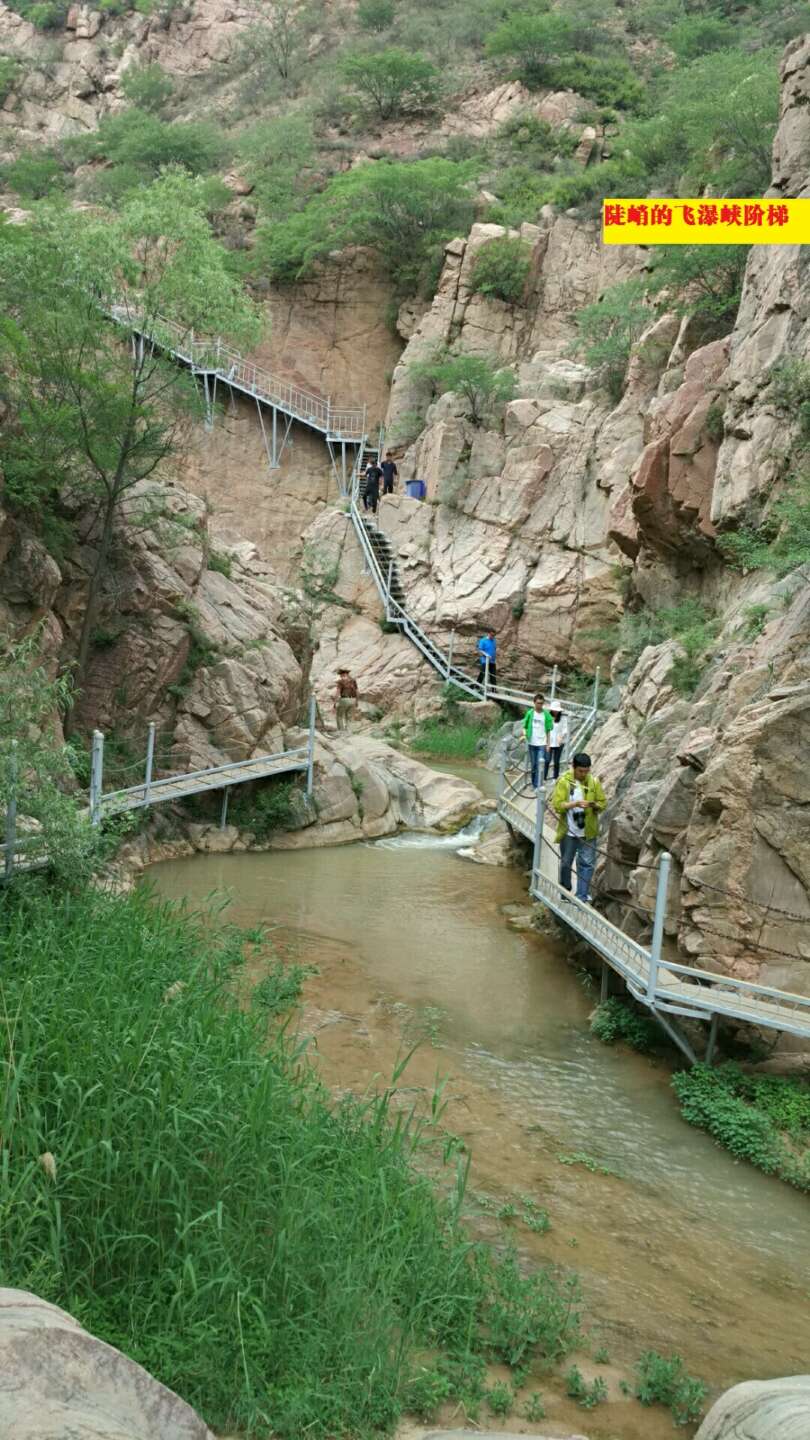在欢乐歌唱声中,我们搭载欢快的大巴到达了桑干河大峡谷内的飞瀑峡景区。飞瀑峡源自于大峡谷外栗家湾东侧一条沟叫“小河沟”,在沟内有一股清溪终年长流,不知流了多少年头,这股水源于温家蜜北面的一个大山湾里,人们叫它“水尽头”。这水流顺山峡阶梯而下形成瀑布数个,由于峡谷幽深水滚飞溅,发出巨大的响声,为了让人们来欣赏这壮观的瀑布,顺山崖筑了铁锁栈道,峡谷中的石头多是红色花岗石,多年来被水冲刷的光滑亮丽,炎热的盛夏走进此沟,会使你感到浑身清爽,有人给这里起名叫“花溪瀑布”,也有人叫它飞瀑峡。纵长5000米的峡谷上形成6级瀑布,被河水冲刷留下的痕迹,讲述着它古老的故事。游历中的九曲回转,柳暗花明让我们惊叹大自然的鬼斧神工;我们累而不疲的到达了飞瀑峡尽头那谭潺潺小溪处,实在无法想象如此静如处子的溪水在经过崎岖延绵的沟壑时能留下天匠之迹和声势浩大的景观。在溪水尽头处,我们更是发现了数百斤大的天然石物,圆润的表面下层层纹理像极了肉类精华,我们暂先称之为“五花肉”也甚为恰当!虽然爱不释手,却苦于不能动其分毫,却也想它已静静在此卧禅百年,有早一日或可得道成仙,我们何必打扰它的修行,还是罢了罢了……!!!