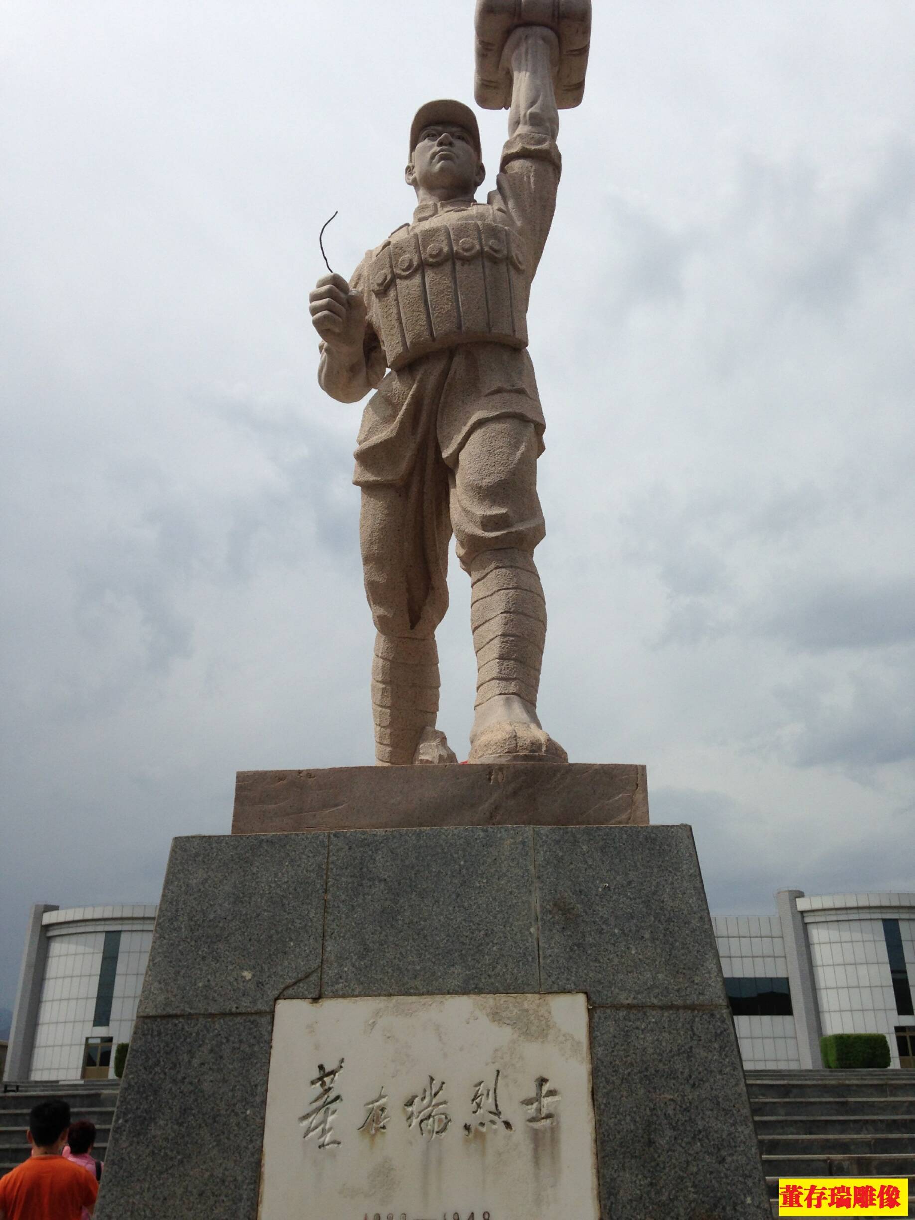 当我们还在感慨之时,北粉年轻小伙子们已经悠哉到眼前,更是提前的结束,一小时的景点旅游在勇敢者的面前仅仅40分钟就告以结束。让我们在路途上不到12点结束了午饭时间,进而向本次旅游的终章“董存瑞纪念馆”进发。“董存瑞纪念馆”地处河北省张家口市怀来县存瑞镇南山堡村,数十年来千千万万的人们怀着崇敬的心情踏入此处来缅怀对英雄的纪念。百十公里的路途在经过两小时的颠簸后不期而遇,迎目而入的是英雄董存瑞生命最后一刻托举炸药包的伟岸身姿,耸立的雕像直入纪念馆前方,先前欢快的气氛早已凝结为对英雄的肃穆和尊崇。董存瑞(1929年——1948年),河北省张家口市怀来县人,出身于贫苦农民家庭,当过儿童团长,1945年8月参加八路军,1947年3月加入中国共产党。1948年初春担任中国人民解放军东北野战军第11纵队32师96团2营6连2排6班班长。先后荣立大功三次、小功四次,荣获勇敢奖章三枚、“毛主席奖章”一枚。1948年5月25日,在解放隆化县的战斗中英勇牺牲,当时未满19岁……。