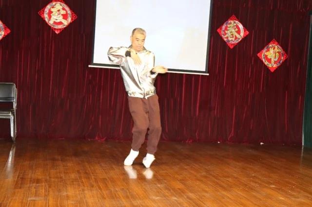 你方唱罢!我登场!在耀眼的灯光下!一道银色闪电登上了联欢会的舞台。已经50出头的王希振在劲爆的迪斯科伴奏下,身姿时如水蛇般柔韧,时如机械战士般充满节奏感,又时如踏足太空般充满科幻感。下腰的“铁板桥”功夫以及头触地瞬间“鲤鱼打挺”跃龙门的翻身而起。让在座的员工惊呼、喝彩四起!难以相信这是50岁的王希振所