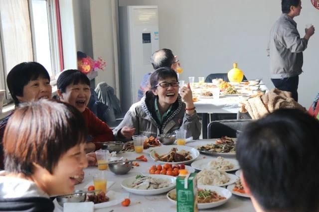 散场后的会餐中,北粉的全体员工喜气洋洋,勤快的食堂厨师早已为大家准备好了聚餐食物。洁白整齐拼接的6张“大方桌”安放在食堂就餐区。丰盛的菜品是厨师几个日夜的精心准备下熬制所成,劲道的酱牛肉,香气扑鼻的清蒸鱼,麻辣可口的油焖大